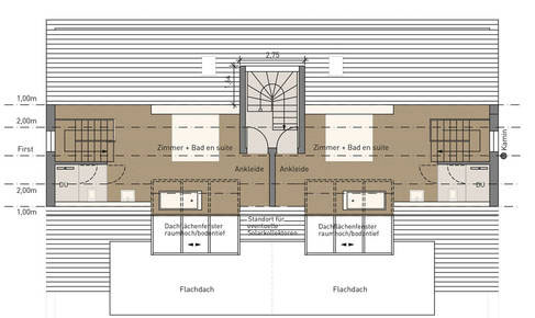 Beide Wohnungen im Dachgeschoss sind mit jeweils knapp 120 qm Wohnfläche ideal für Paare. Die Wohnungen besitzen großzügige Dachterrassen, auf denen man an lauen Sommerabenden fallenden Sternschnuppen zusehen kann. Der darüber gelegene Dachspitz lässt sich unterschiedlich nutzen, bevorzugt als Schlafzimmer mit Bad en suite oder beispielsweise als separat zugänglicher Gäste- oder Arbeitsbereich.